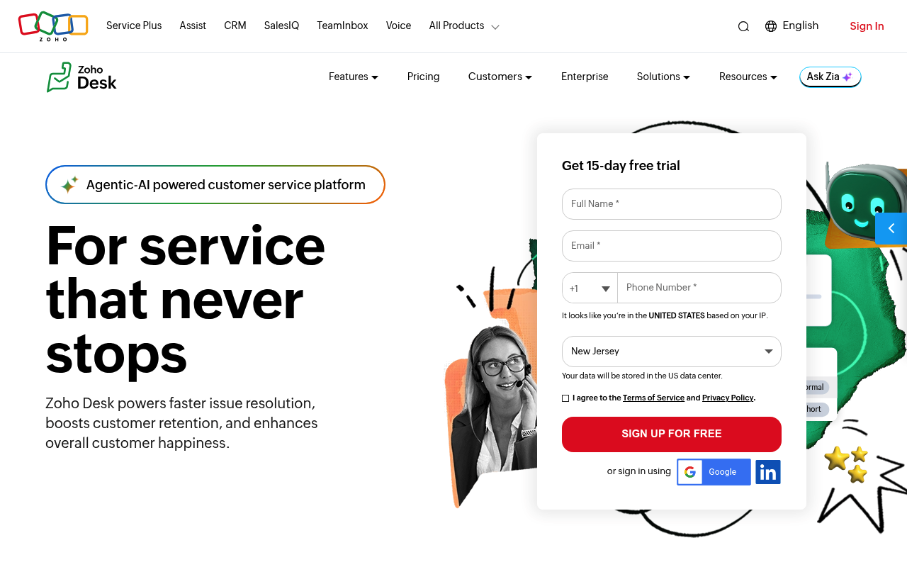Zoho Desk is a help desk platform with built-in CRM and omnichannel ticketing. If you already use a Zoho product, this one is worth considering.