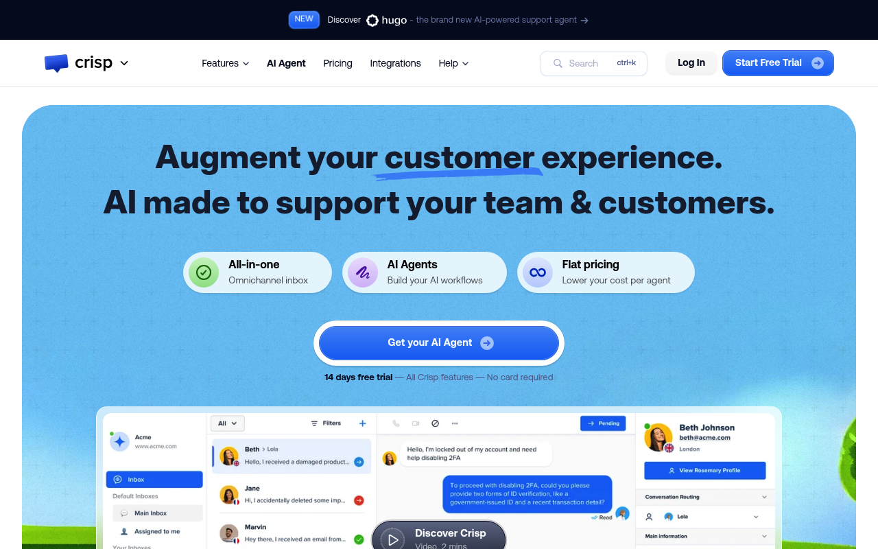 Help Scout gives agents a shared inbox, while Botpress gives you an AI agent that resolves tickets and hands off to humans seamlessly.