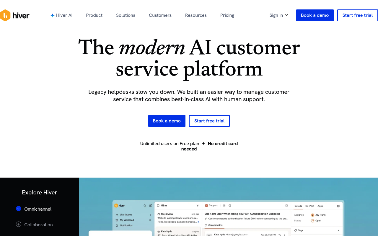 Hiver is a Gmail-native customer service platform with shared inboxes, AI, and omnichannel support. If your team lives in Google Workspace and switching to a separate help desk feels like overkill, Hiver meets you where you already work.