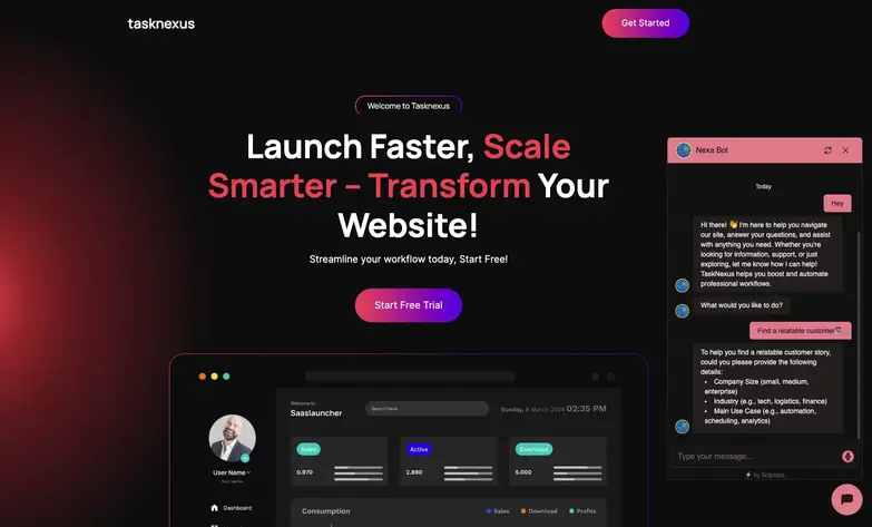 Neste exemplo, vamos criar um chatbot para o Task Nexus, um site SaaS que ajuda usuários a encontrar as melhores ferramentas para gestão de projetos. O chatbot irá: